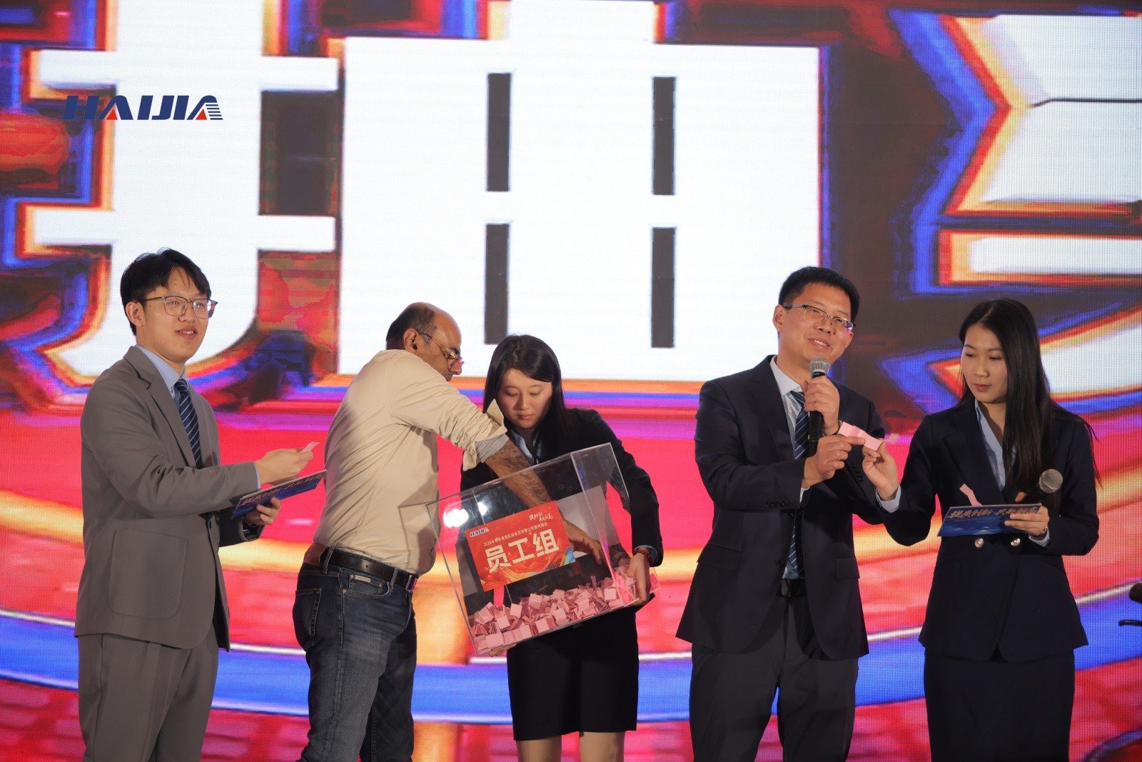 舞臺上員工節(jié)目輪番上演,盡顯團隊風(fēng)采;抽獎環(huán)節(jié)驚喜連連,歡呼聲此起彼伏;互動游戲趣味十足,拉近彼此距離;舉杯敬酒間滿是并肩前行的情誼,歡聲笑語里凝聚起同心